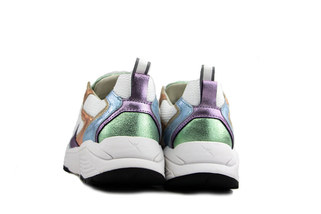 Opvallende witte Xsensible Brooklyn dames sneakers voor het voorjaar. Ze hebben multi kleurige metallic leren vlakken, een witte runnerzool en een in de zool verwerkt balansblok. Je trekt de sneakers met veel plezier aan door de gewatteerde elementen, stevige zool en goede pasvorm. Extra fijn is het uitneembare voetbed wat maakt dat je deze Xsensible dames sneakers ook met steunzolen kunt dragen.
