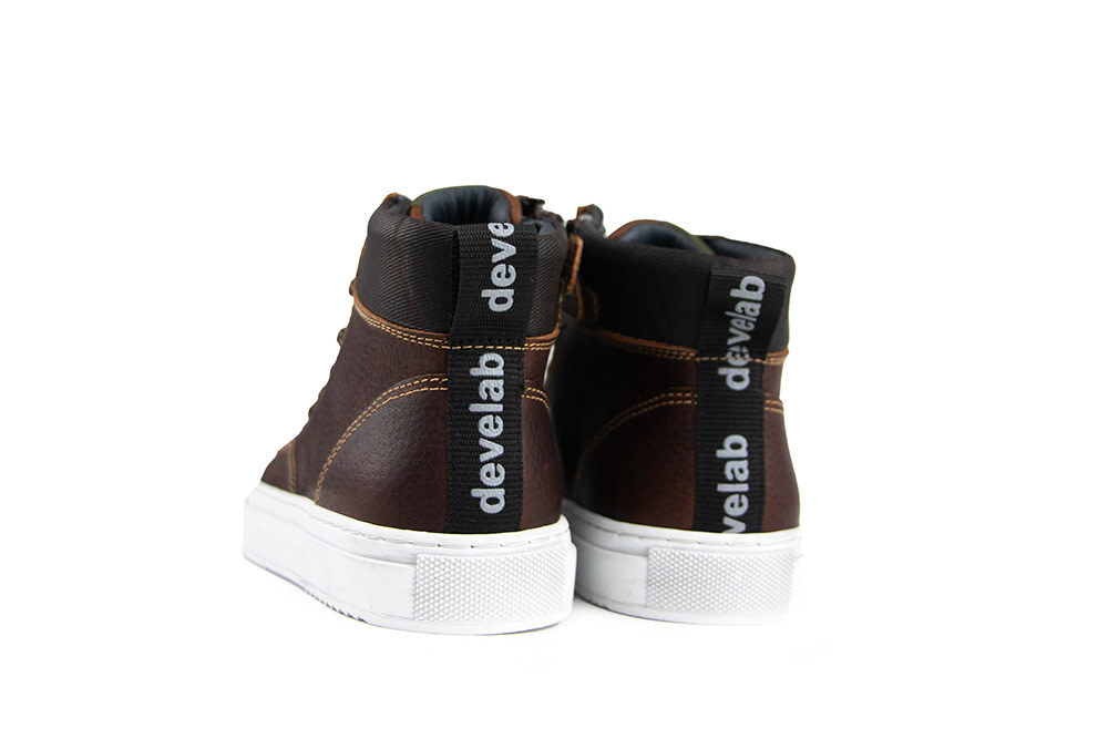 These cool sneakers from Develab are perfect for boys who love to play while looking stylish! The brown leather gives them a timeless look, while the logo detail on the heel adds a sporty touch.