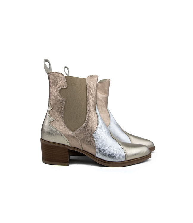 These beautiful western ankle boots from DL Sport are a real eye-catcher! Made of high-quality leather in platinum, gold and silver, providing a luxurious and versatile look. The slightly tapered nose and the 5 cm wood-look heel give the boots an elegant western look.
