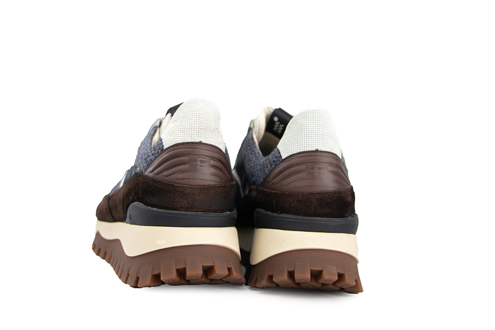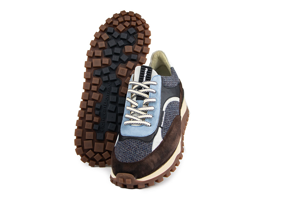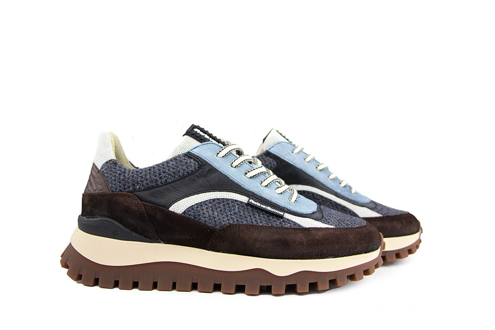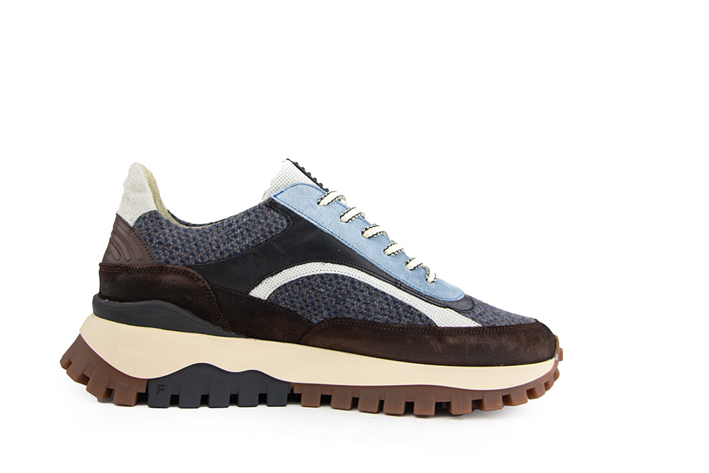 Make a statement with the Floris van Bommel De Grommer 05.09 sneakers. The grey textile base is brought to life by a striking mix of materials and bold color accents. Perforated white leather details add a sporty edge, while the two-tone midsole and chunky block sole give the design a modern twist.