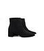 Introducing a timeless pair of black suede women's ankle boots from Högl. These boots feature a sophisticated finish with subtle lines on the side and a pointed toe. They are designed with a zipper on the inside for easy slip-on access and offer a comfortable fit due to the partial leather lining, soft materials, and wide heel. The 4.5 cm block heel provides a subtle height increase, and the boots are suitable for wearing with orthotics.