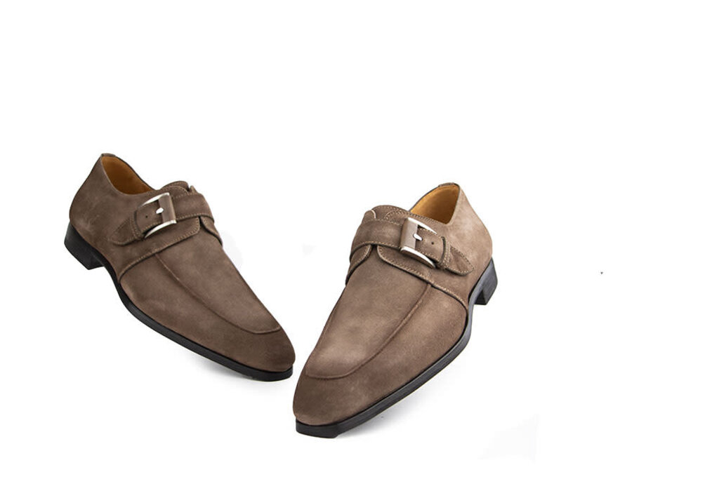 Timeless, elegant and stylish taupe suede Magnanni buckle shoes for casual chic men. They have a subtle color gradient, a chunky buckle with leather accent and a beautiful mirror seam. They sit super on the foot due to the perfect fit, sturdy sole and soft footbed. Nice detail is the Magnanni logo print on the sole. The warm taupe makes them timeless so you can easily wear them all year round and to practically any occasion.