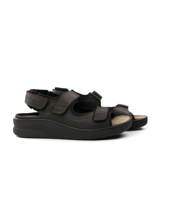 Dark brown suede Mephisto sandals for rugged men. The sandals have beautifully detailed stitching across the sandals and across the sole. The suede footbed is soft and breathable and, along with the padded lining, makes these sandals a delight on the foot. The Velcro closure makes these Mephisto sandals easy to put on and take off.?