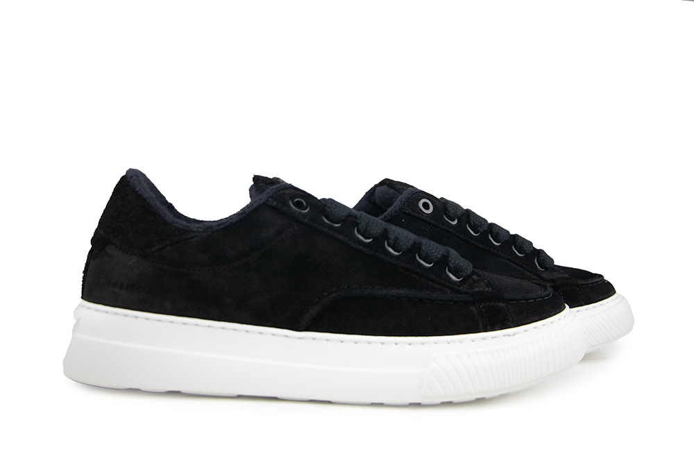 The Nubikk Calera Tora sneakers are all about modern style with a bold touch. Featuring an all-black suede upper, wide laces, and a signature stitched seam running along the side, these sneakers deliver a sleek yet distinctive look. The contrasting white sole adds a sporty edge, making them a versatile choice for men who appreciate subtle details with maximum impact.