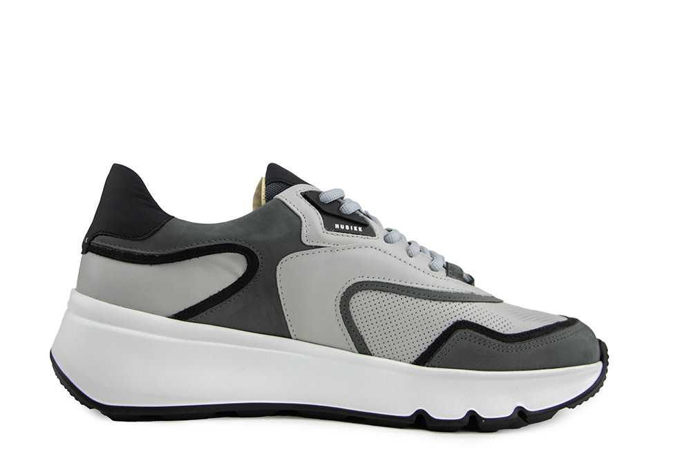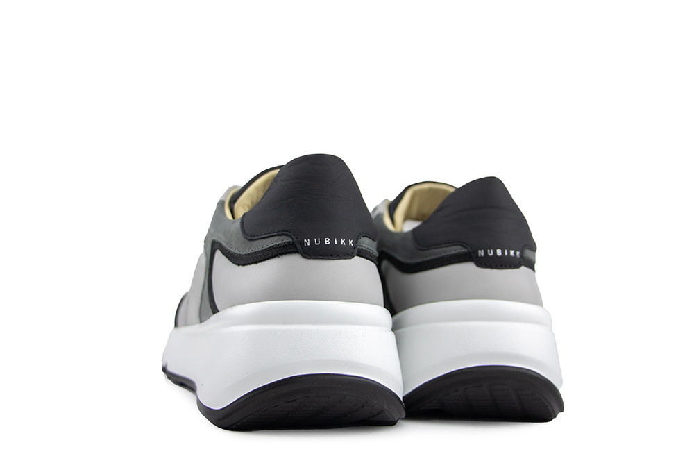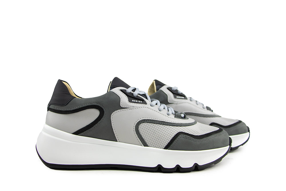 The Nubikk Luca Noa sneakers in grey offer a sleek mix of style and comfort. Featuring layers of leather in different shades of grey with a subtle black accent, these sneakers have a dynamic design. Perforations on the vamp and sides add a sporty edge, while the white midsole keeps the look fresh. A padded tongue and textile details complete the contemporary style.