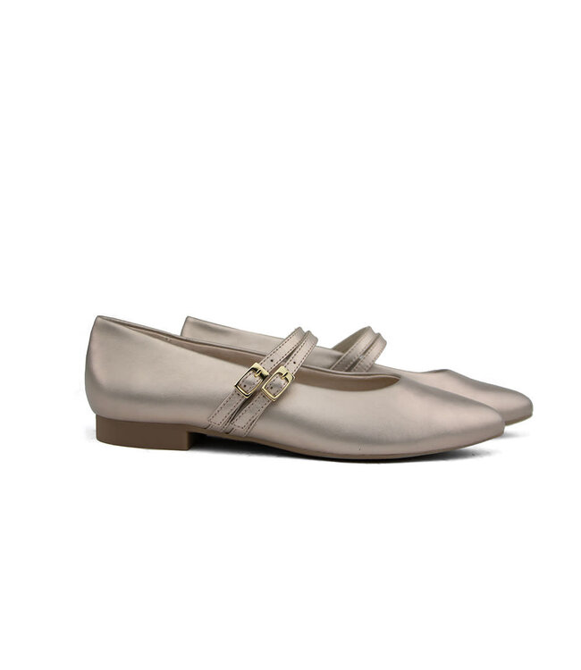 Elegant strap shoe from Paul Green. Made of platinum gold leather. Featuring a beautiful pointed toe and two narrow straps running across the instep. The lining is made of leather. With a rubber outsole that offers good grip.Â