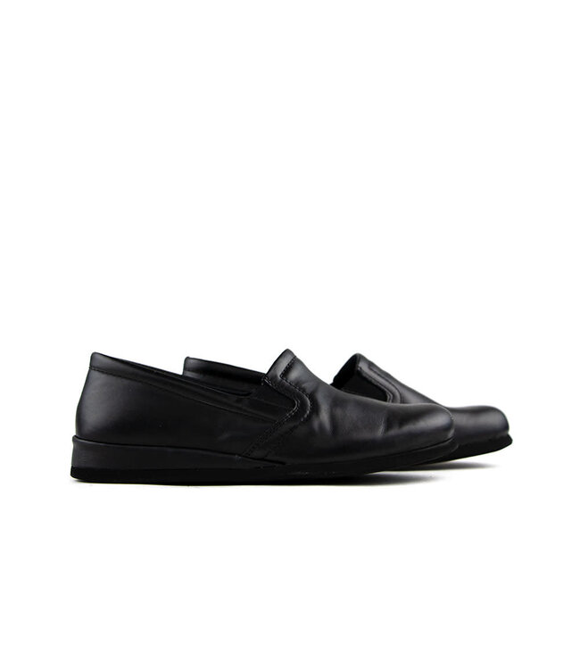 These black slippers are simple, comfortable, and super timeless! The mules are made of black leather with elastic inserts on the sides. The lining is textile, and the sole is rubber. Thanks to the sturdy sole and good fit, these mules are very comfortable to walk in!