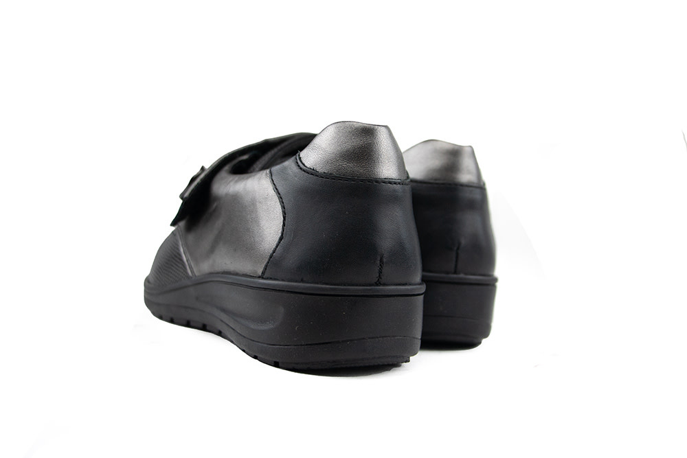The Velcro closure makes them easy to put on and adjust for a secure fit. The soft textile lining feels pleasant against the foot, while the lightweight rubber sole provides cushioning and grip. With a K-width, they offer extra room in the forefoot, and the removable footbed makes them suitable for your own orthotics.