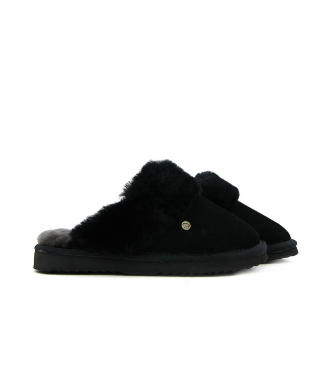 These black suede Warmbats will always keep you toasty warm. The slippers have a high cuteness level with the sheep's wool cover and the subtle logo on the side. The sheepskin lining means your feet never have to be cold. You can easily walk outside to take out the trash with the sturdy rubber sole. Whatever you need to do, slip on is very easy.
