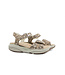 The upper features a sand-colored base with a playful gradient print, giving the sandal a fresh and modern look. A decorative buckle on the side adds a stylish detail.