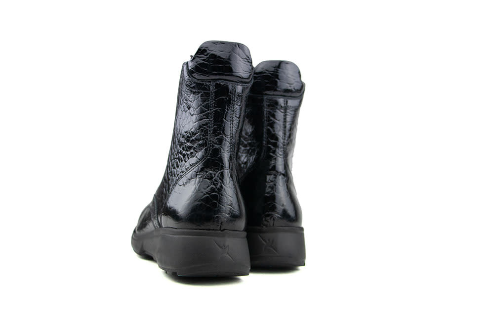 These stylish ankle boots from Xsensible’s Stretchwalker collection combine comfort with a modern look. The black patent leather with croco print adds a luxurious and refined touch.